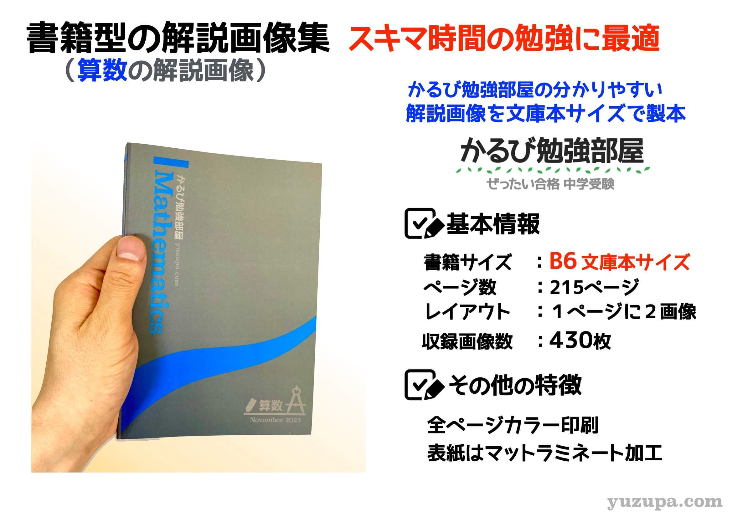 中学受験の情報発信ブログ「かるび勉強部屋 ( https://yuzupa.com/ )」で公開している記事の中から画像を全ページカラーで製本化した商品となります。