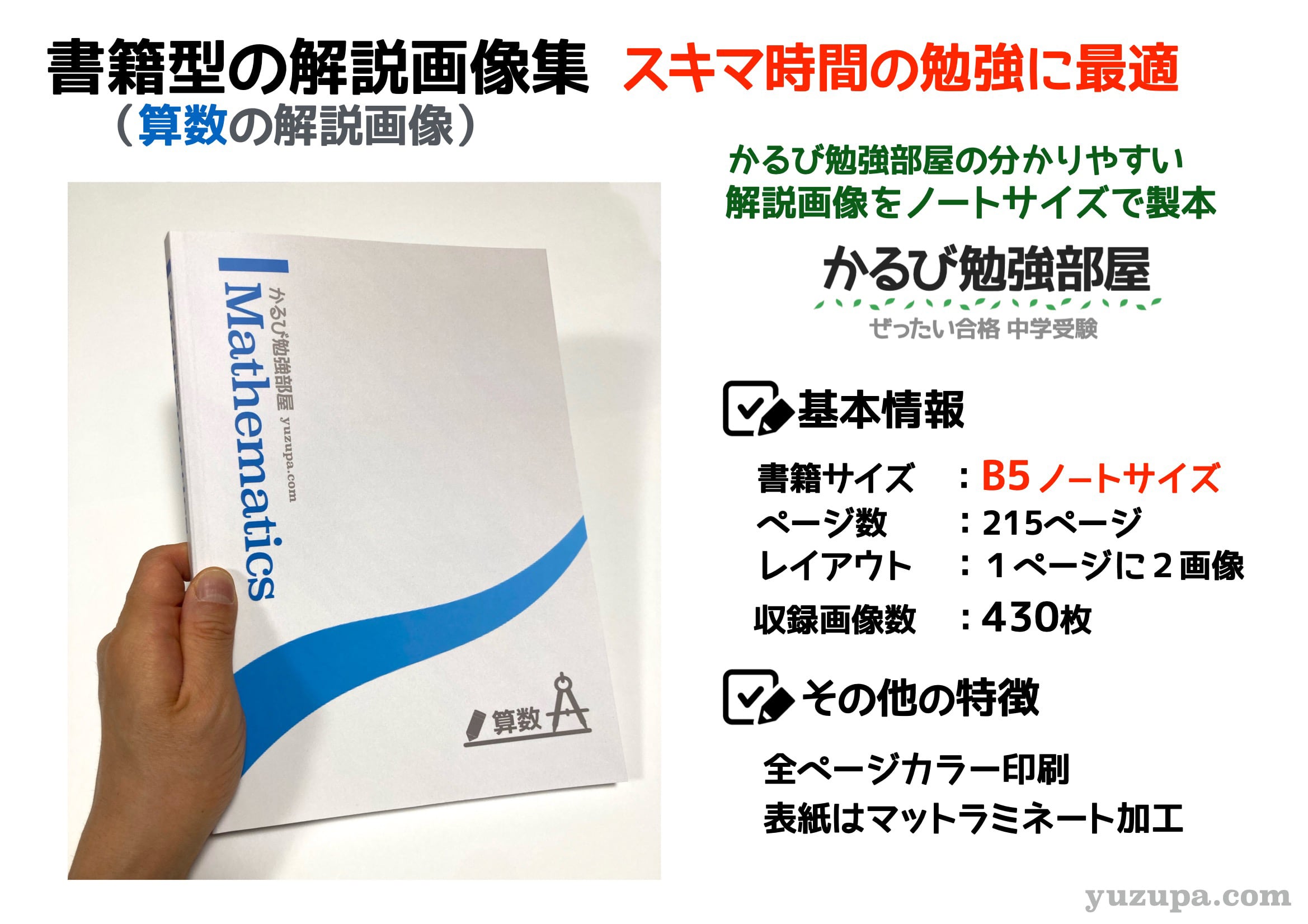 中学受験の情報発信ブログ「かるび勉強部屋 ( https://yuzupa.com/ )」で公開している記事の中から画像を全ページカラーで製本化した商品となります。